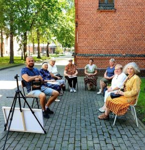 2019.06.27 Džiugu, jog mūsų nedidelį sambūrį nuolatos papildo nauji, žingeidūs ir aktyvūs veidai. Kartu su naujais žmonėmis ateina ir naujos idėjos, bei darbai. Nuolatinį paskaitų ciklą šį kartą papildėme praktiniais užsiėmimais – tapyba ant drobės, bei fotografija. Kol kas kūrybine saviraiška ryžosi užsiimti tik nedidelė dalis senjorų, likę tuo metų žiūrėjo dokumentinį filmą narpliojantį socialiai jautrią temą. Tikimės, jog ateityje ledai bus dar labiau pralaužti ir atsiras daugiau norinčių save išmėginti kūrybinėje veikloje, kurios svarbiausia intencija atskleisti sau ir bendraminčiams emociją, bei idėją paakinusia nutapyti konkretų paveikslą. Tokie ir panašūs praktiniai užsiėmimai gerina emocinę savijautą, atskleidžia kūrybines galias, išlaisvina vidinius konfliktus ir žinoma suburia jungtiniai veiklai, bendravimui. Turite pažįstamu kurie galimai norėtų prisijungti prie kūrybinės saviraiškos grupės Klaipėdos universitete? informuokite juos apie atviras paskaitas ir kūrybinius užsiėmimus vykstančius mūsų mylimam mieste. Rašykite: larionovas@inbox.lt